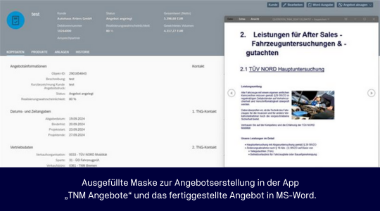 Über die Angebots-App können jetzt mit wenigen Klicks Angebote erstellt werden. Die Funktion mit einer direkten Schnittstelle zu SAP ERP für die Angebotsnummer steht allen Bereichsleitern, Regionalleitern und Teamleitern sowie Key Account Managern zur Verfügung.